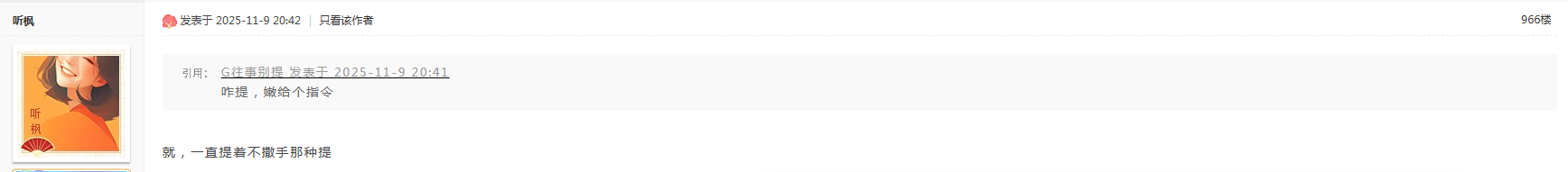 菜七吖 发表于 2025-11-10 20:13 我要翻个有说头的楼层